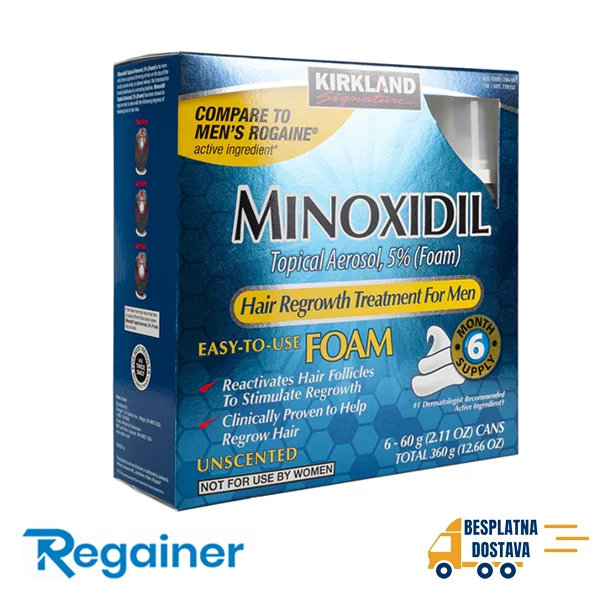 Kirkland Minoxidil 5% je tečnost koja sadrži 5% minoksidila, namenjena isključivo za upotrebu na koži glave kako bi pomogla muškarcima i ženama kod ponovog rasta kose.